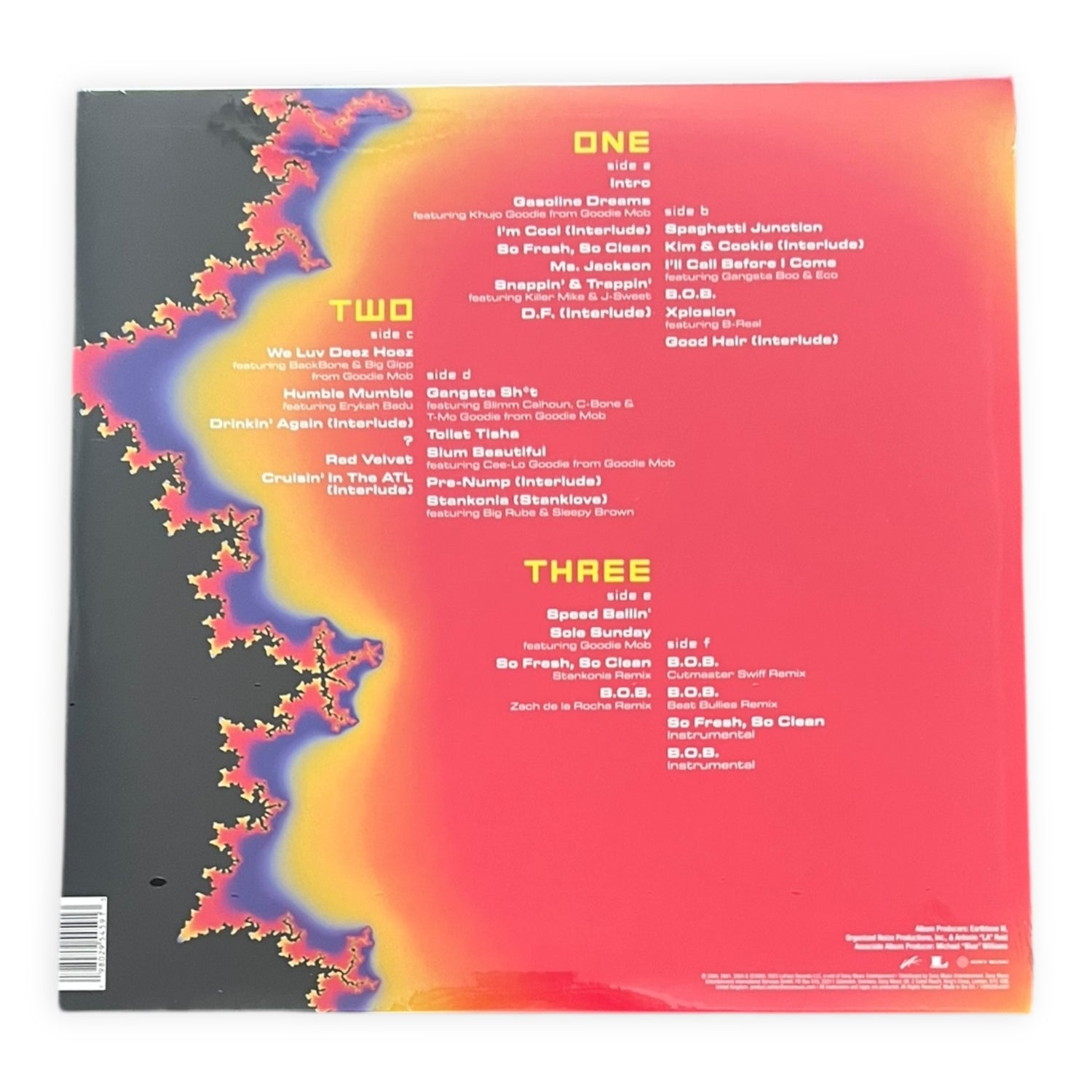 Deluxe expanded 3LP edition for Stankonia's 25th anniversary pressed on purple marble vinyl.