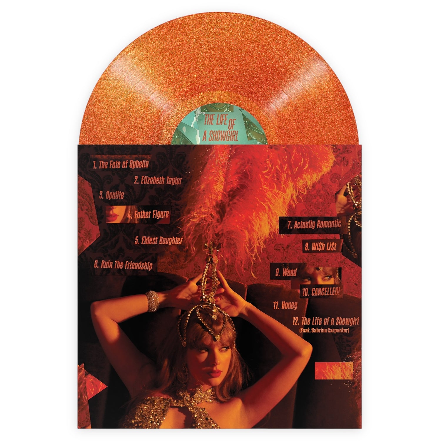 Taylor Swift's 12th studio album, The Life of a Showgirl, will be released worldwide October 3, 2025. The LP includes 12 songs, Portofino Orange Glitter Vinyl,  Double gatefold jacket, unique front and back cover, and never-before-seen photos and album lyrics. The Life of a Showgirl CD includes 1 double-sided folded poster, collectible disc artwork and an 8-page lyric booklet that includes never-before-seen photos and song lyrics.